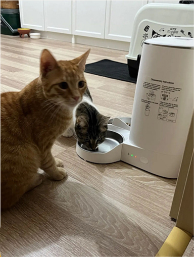 Cool stuff set the feeding twice a day with a timer. Now my cat does not wake me up in the morning, and when they hear the familiar sound, they race to the feeder. Do not have to weigh the feed yourself every time. Thanks to the built-in camera, you can always look at cats near the feeder from anywhere.